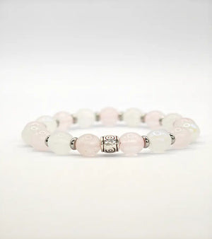 Bracelet en Quartz rose et Pierre de Lune Arc en ciel