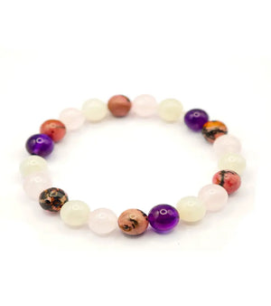 Bracelet "Mira" Rhodonite Quartz rose Pierre de Lune Améthyste