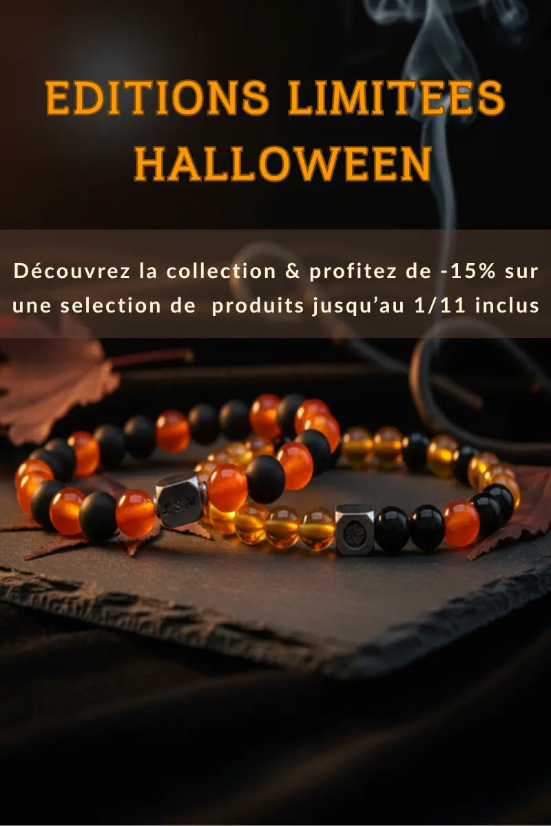 Bracelet Aether - Edition Limitée Halloween Jade Jaune & Agate Noire
