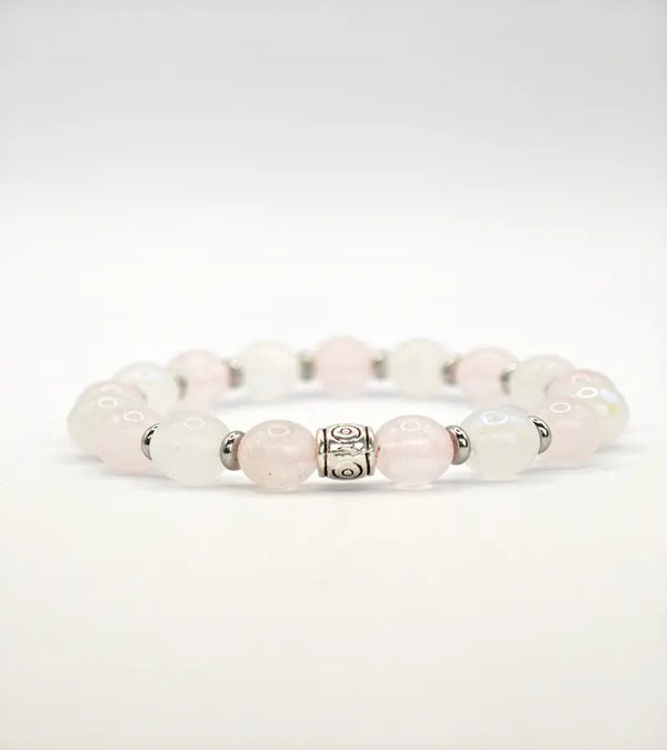 Bracelet en Quartz rose et Pierre de Lune Arc en ciel